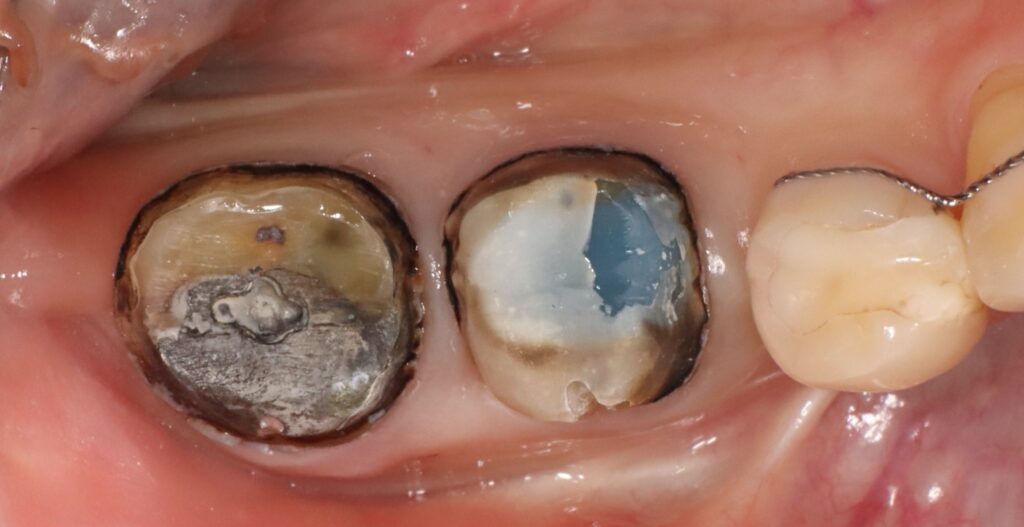 오래된 보철물 아래 충치가 생기거나