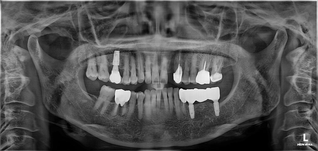 뼈이식 후 임플란트 식립을 진행한 모습입니다.