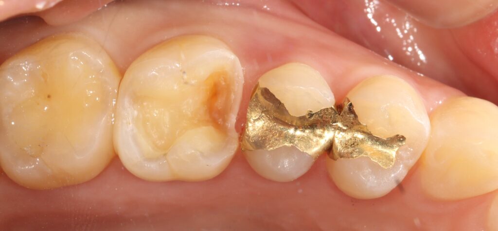 이번 증례는 기존 금 인레이가 수복되어 있던